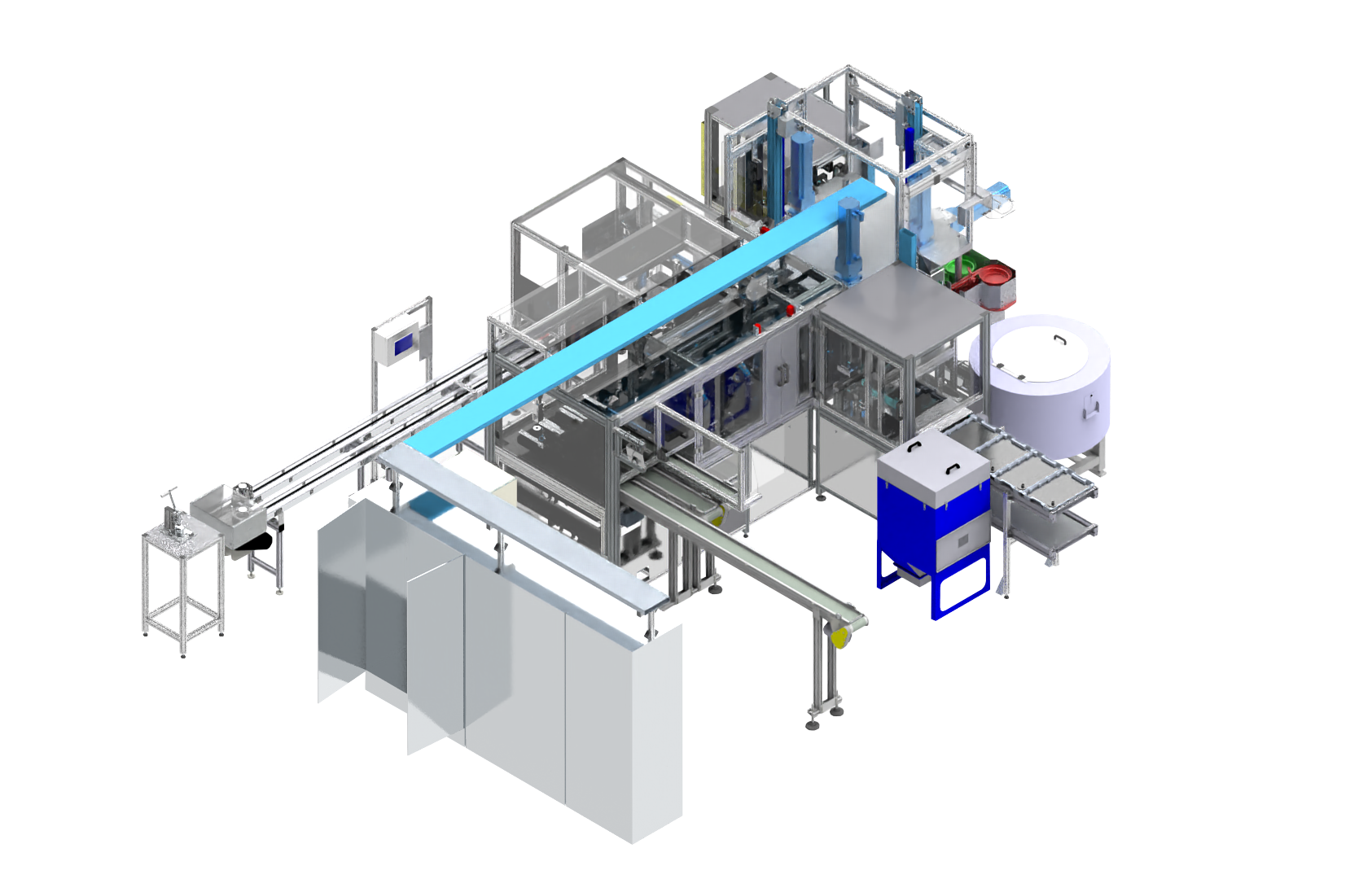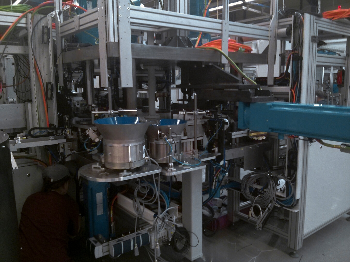 Die Montage- und Prüfautomaten ermöglichen eine vollautomatische Kombination beider Produktionsabläufe. Automatische Zuführungen aller zur Montage notwendigen Einzelteile. Taktzeitoptimiert durch Einzelstationsabläufe per Rundtakttische. Einzelteileweitergaben durch spezifisch angepasste Handlingssysteme.